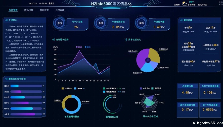 水利调度中心信息化是利用现代化的通信技术、图像采集处理技术、计算机软件技术等对供配水沿线的水库、河流、泵站、闸 站等水利设施的状态和数据的综合采集和监控,将水情信息、调度信息、设备信息通过计算机软件处理后,投放于监控中心的大屏 幕上进行图形化显示,从而使管理人员更直观的掌握水利调度的过程,及时处理调度过程中的各种问题。
