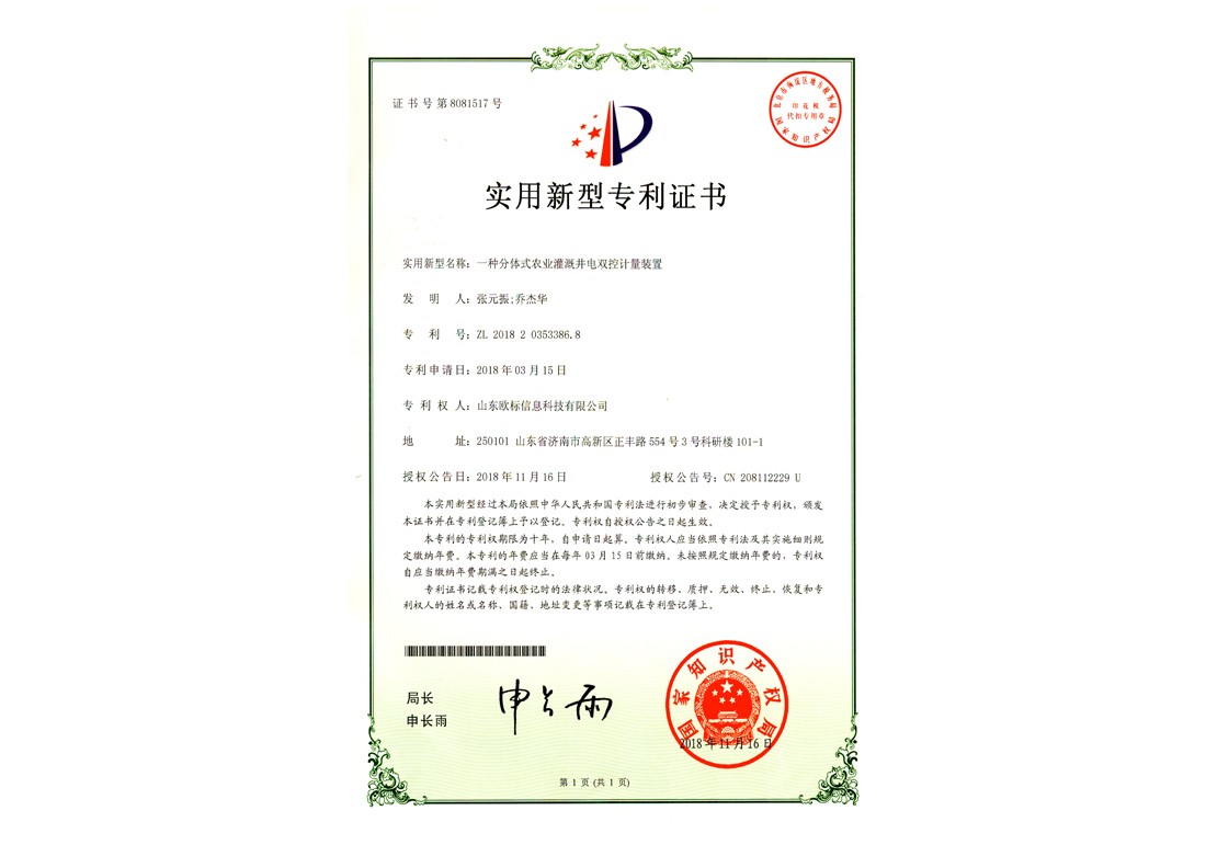一种分体式农业灌溉井电双控计量装置