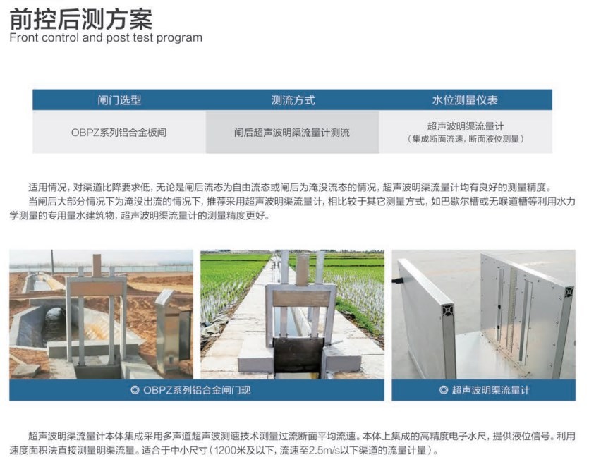 明渠测流箱,流量计量部分采用流速面积法原理,流速测量部分采用超声波时差法原理,根据渠道深度配套不同型号的测箱,每5cm布设两对换能器测量层流速。过流面积部分是通过电子水尺测量水深,然后根据测箱的内部测量参数进行积分换算成实时流量。